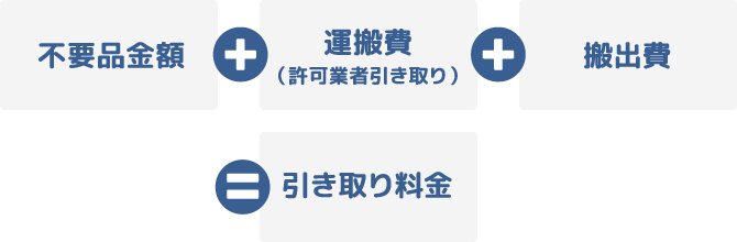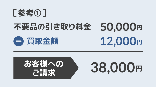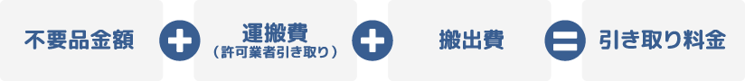 HPの表記で不要品引き取り金額と表記している箇所がございますが、当サービスを行い、お客様から頂戴いたします費用は、片付けのお手伝いに付帯する業務の費用としていただくものです。