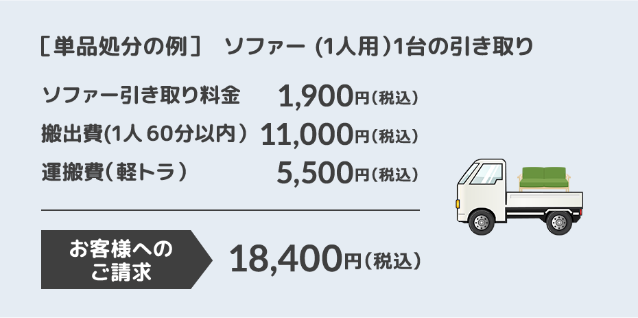 単品の片付けも可能です。お荷物が複数ある場合は、定額パックの方がお得になります。